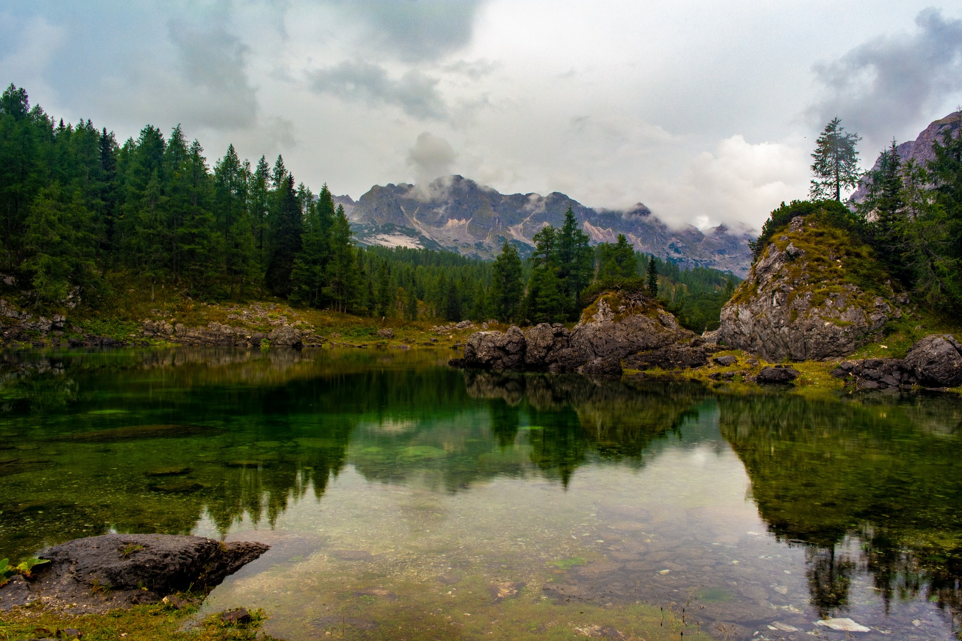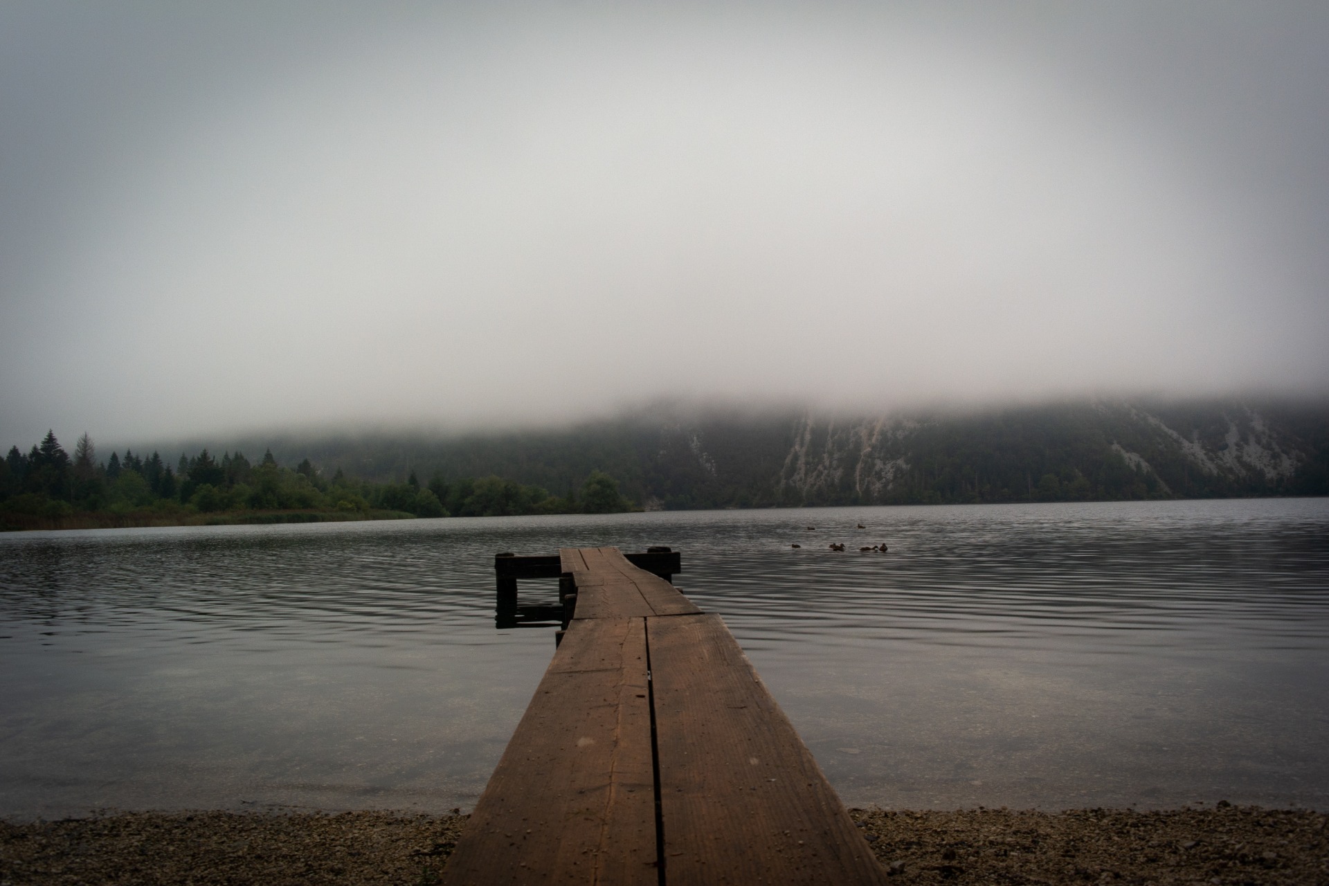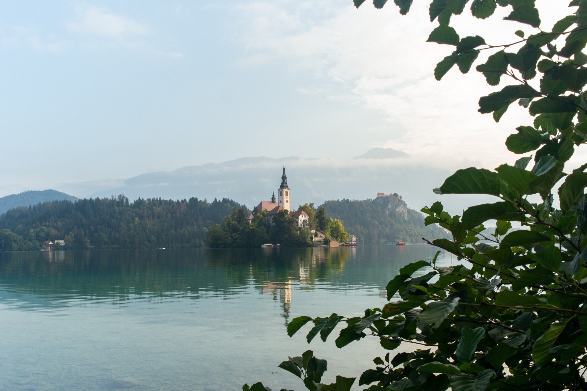 Toto jezero jsem chtěl navštívit hlavně kvůli fotce, protože podobná scenérie se moc nikde nevyskytuje. Ostrůvek s kostelem uprostřed jezera s krásnými horami v pozadí. Ehm, tedy alespoň tak jsem to viděl na ostatních fotkách, já měl smůlu a byl opar až skoro do 11. Je dobré si přivstat, je to rušné místo. Doporučuji zaparkovat u nějaké kavárny/restaurace, dát si kávu a jít se projít, pokud to dovolí obsluha. Parkování je tam docela drahé a takto jsme to vyřešili my.